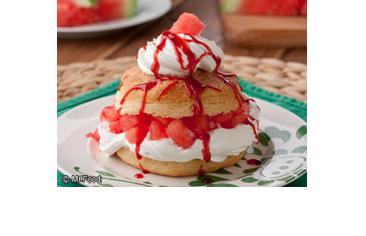 Replace the biscuit tops, then top with the remaining whipped cream and reserved watermelon. Drizzle with the raspberry Melba sauce and serve.