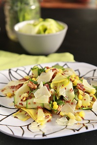 In a large bowl combine salad zucchini, yellow squash, corn and remaining salad ingredients, drizzle with desired amount of dressing and toss.