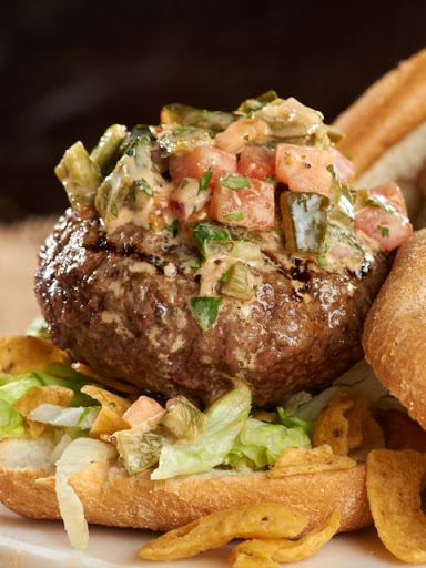From the goo of the cheese, the crunch of the corn chips, and the heat of the pepper relish, this burger is a treat for the senses.