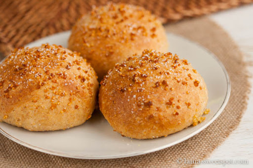 Place rolls, seam side down, on a baking sheet lined with parchment paper. Cover loosely with plastic wrap and let rise 20 minutes while the oven preheats. Brush tops of rolls with melted butter or oil, and sprinkle with reserved cooked quinoa, and coarse salt. Bake rolls for 10 minutes, then lower temperature to 375°F and continue to bake for 15 minutes more. Rolls are ready when they are dark golden brown.