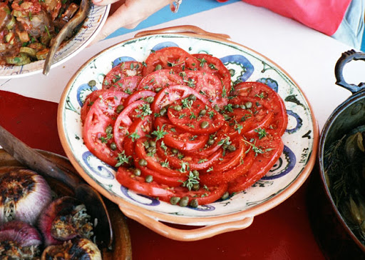 Tomato Salad with Shallot Vinaigrette, Capers, and Basil