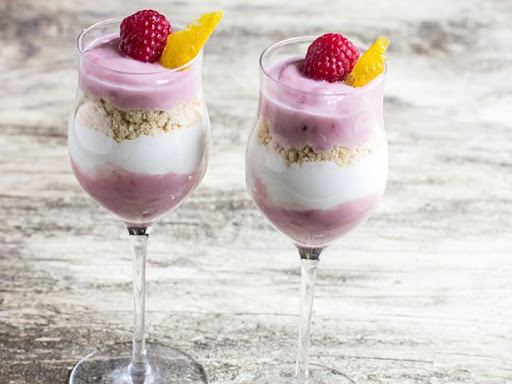 Set 2 raspberries aside for garnish. In medium bowl, mix and crush remaining raspberries. Stir in raspberry yogurt.