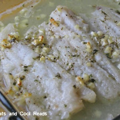 Combine the garlic, melted butter, parsley, lime juice, salt and pepper. Pour over Pollock fillets.