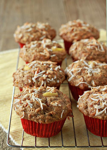 Good Morning Sunshine Muffins (Hearty Carrot Muffins with Coconut and Pineapple)