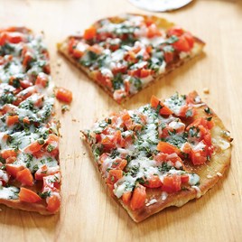 3. Divide dough in half. On lightly floured surface, roll each half into very thin 9-inch round. Heat 3 tablespoons oil in large nonstick skillet over medium heat until just smoking. Transfer one dough round to skillet and cook, poking any bubbles that form with fork, until bottom is deep golden brown and crisp, 3 to 4 minutes. Flip dough and sprinkle with half of drained tomatoes and half of cheese mixture. Reduce heat to low and cook, covered, until second side is crisp and cheeses have melted, about 5 minutes. Transfer pizza to cutting board. Wipe out pan and repeat with remaining oil, dough, and toppings. Slice into wedges. Serve.