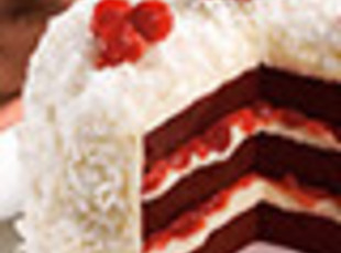 To Frost: Place one cake layer on a serving platter and spread with frosting, top with Cherries. Place the second layer on the first and frost. Place the 3rd cake layer on top and frost top and sides of cake. Sprinkle and gently press coconut over entire cake.