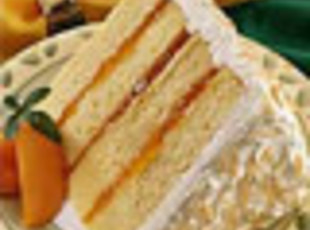 3.Prepare pudding mix as directed on package using 3/4 cup milk. In a large bowl, beat whipping cream until soft peaks form. Fold whipping cream into pudding. Spread on sides and top of cake. Garnish with coconut, apricot halves and mint leaves. Warm reserved preserves to glaze apricot halves. Refrigerate until ready to serve.