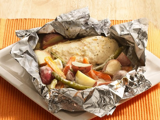 Camper’s choice…individual foil bundles of meat and veggies are ideal for cooks on the go.