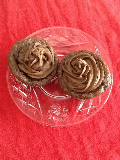 Chocolate muffins with a lovely chocolate almond icing. Add a spicy kick by adding a little cardamom or chili powder. Enjoy!