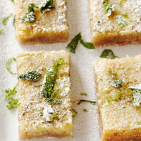 3. Bake for 20 to 25 minutes more or just until filling is set and edges begin to brown. Cool in pan on a wire rack. Using the edges of the foil, lift uncut bars out of pan; cut into bars. Sift powdered sugar over bars. To serve, sprinkle with powdered sugar. If desired, garnish with additional lime peel and fresh mint leaves.