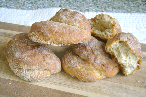 For the Parker House style: Cut rounds, using a 2-inch biscuit cutter, and place them on a buttered cookie sheet. Using a large handled butter knife, make a dent in the middle of the circle, or just off center, and fold over one side. Protecting the rolls with a warm, damp towel, let them raise again for 1 to 1-1/2 hours.