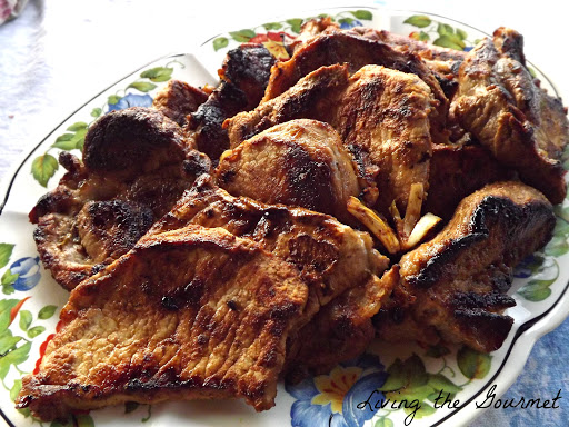 Rub this paste all over the pork and place in a covered bowl in the refrigerator for at least one hour or as long as over night. The longer the pork marinades the better it will taste.