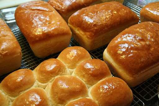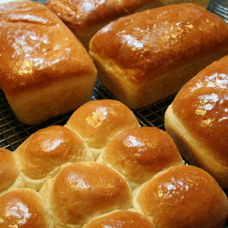 Place in greased bowl, grease top lightly; cover with warm damp cloth. Let rise until double, about 4 hours. Punch down, form into 8 loaves. Let rise until double, about 1 hour.