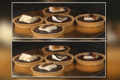 Pour the ganache into the prepared tart shells and garnish with marshmallows.