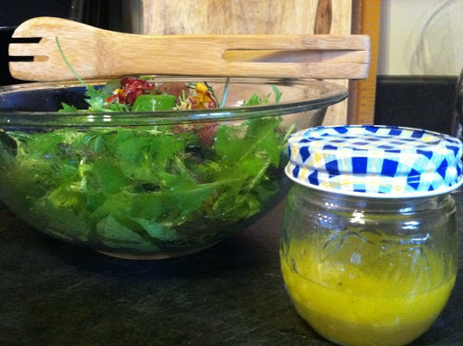 In a medium bowl juice one lemon. Whisk in honey and vinegar. Vigorously whisk in the olive oil slowly to emulsify. Finish with a dash of sea salt and cracked black pepper. Serve with salad greens.