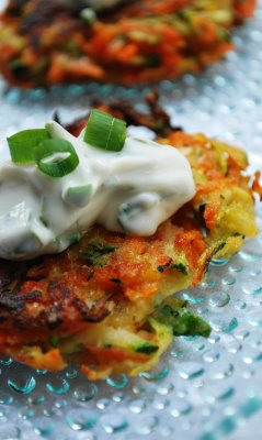 Summer Vegetable Pancakes with Basil Chive Cream