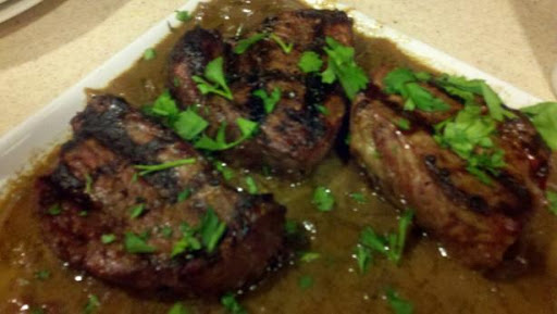 PLACE grilled filets on a large platter; top with sauce. Garnish with parsley and rosemary.