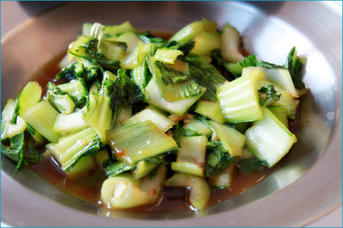 Heat oil in a large skillet over medium heat. Add garlic and ginger and cook 1 minute. Add bok choy and soy sauce cook 3 to 5 minutes, until greens are wilted and stalks are crisp-tender. Season, to taste, with salt and black pepper.