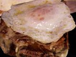 Working in 2 batches, melt 1tablespoon of butter in a large skillet over medium-high heat. Crack 3 eggs into the skillet and season with salt and pepper, to taste. Cook until the whites are nearly set, about 3 minutes. Carefully flip the eggs and continue cooking until the whites are completely set, about 1 minute more. You're going to top each portion of the casserole with a fried egg. Repeat with the remaining 3 eggs and 1 tablespoon butter. Top with Gruyere and it in the oven for a few minutes until cheese melts.