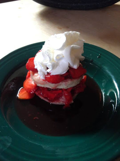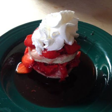 Split biscuit in half, cover with strawberries, then other half of biscuit, then more strawberries, then top with plenty of whipped cream.