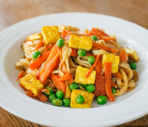Stir Fried Noodles with Carrots + Eggless Tofu