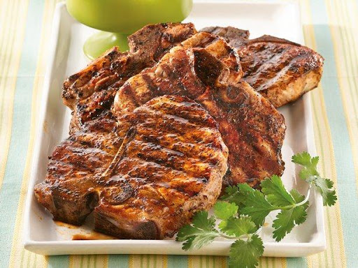 - 4 bone-in pork loin chops, 1/2 inch thick (4 oz each)