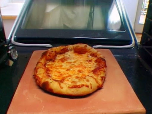 Place the pizza stone or tile onto the bottom of a cold oven and turn the oven to its highest temperature, about 500 degrees F. If the oven has coils on the oven floor, place the tile onto the lowest rack of the oven.