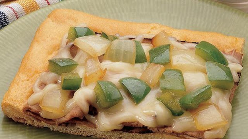 5 Bake 8 to 10 minutes longer or until edges of crust are golden brown and cheese is melted. Meanwhile, in 8-inch skillet, heat oil over medium heat until hot. Add bell pepper, onions and bouillon; cook and stir 3 to 5 minutes or until tender. Spoon cooked vegetables over melted cheese.