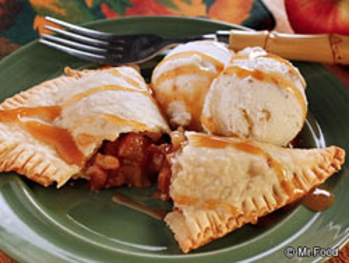 Spoon 1/3 cup of the apple mixture on one half of each wedge. Fold the wedge over the filling. With a fork, crimp the edges to seal the dough. Place on an ungreased baking sheet. Cut several small slits in the top of each to allow steam to escape.