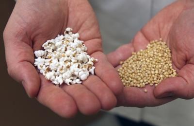Sorghum is a grain; you’re actually popping the seed. And you can pop it just like you would popcorn, in the microwave or on the stovetop. It’s key to get popping sorghum — not all sorghum is meant for popping. I like the Mini Pops brand.