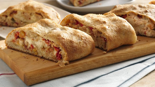 4. Bake 23 to 27 minutes or until deep golden brown. Cover with foil to prevent overbrowning if necessary. Let stand 5 minutes. Cut on diagonal to serve.