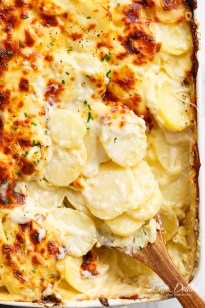 Cover tightly with aluminium foil and bake for 40 minutes until potatoes are just tender. Remove foil; cook for a further 30 minutes or until top is golden and the sauce is bubbling. For a crispier top, broil (or grill) on medium heat for 2-3 minutes until cheese is crispy.