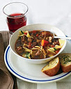 •Return ribs with plate juices to pot. Add thyme and bay leaf. Raise heat to high. Add wine. Cook, scraping up brown bits with a wooden spoon, until slightly reduced, about 1 minute. Add stock and water. Bring to a boil. Reduce heat, and simmer, partially covered, until beef is tender, 2 to 2 1/2 hours.