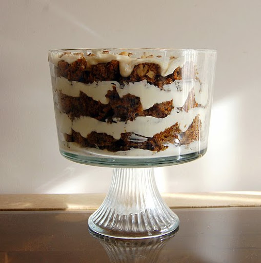 2. Whisk together the flour, baking powder, baking soda, cinnamon, cloves, nutmeg, allspice and salt. In another bowl, stir together the carrots, chopped nuts, coconut and raisins.