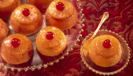 Lightly press well-drained pineapple slices into sugar mixture. Place cherries in center or pineapple, sliced sides up.