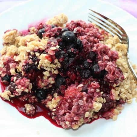 1. In a medium sized casserole dish (2.5 quart) place berries.