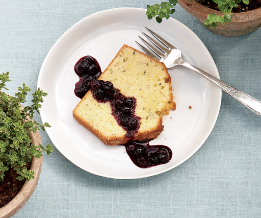 The blueberries in their syrup will keep, covered and refrigerated, for 1 day; the thyme flavor will become more intense. Reheat gently just before serving.