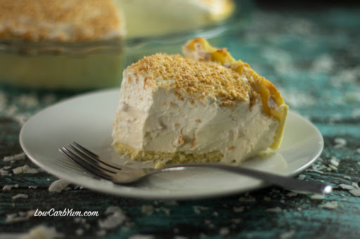 A low carb pie perfect to serve on holidays. This sugar free coconut cream pie recipe has a light and flaky gluten free crust with a smooth creamy filling.