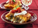 3.Heat oven to 350°F. Bake uncovered 50 to 60 minutes or until knife inserted near center comes out clean. Let stand 10 minutes. Cut into squares. Serve with salsa.