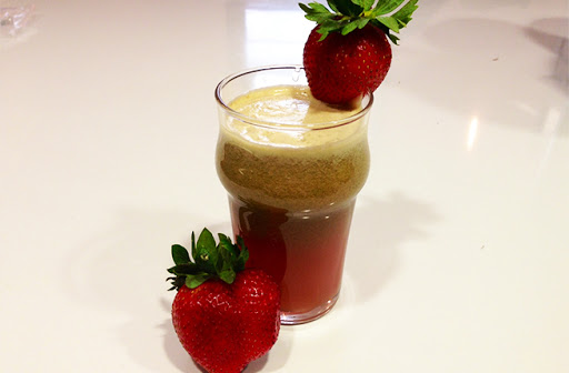 2.) Add all ingredients through the juicer 9and yes you can leave the green leaves on the strawberries!).