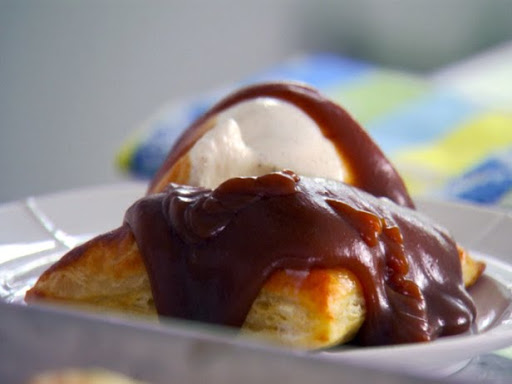 Apple Turnovers with Caramel Sauce and Ice Cream