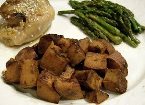 Drizzle spice mixture over the sweet potato. Toss to ensure the sweet potatoes are thoroughly coated.