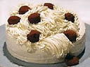 To frost the cake, use a spatula to cover 2 of the cake layers with frosting. Stack them together. Flip the third cake layer over and rest it on the top to create a very flat top for the cake. Frost on the sides and top with a thin "crumb" layer to seal all the crumbs in and chill. Repeat with a finishing layer of butter cream. Place about 2 cups of butter cream in a potato ricer and press it through onto the top of the cake moving it in a circular motion to look like spaghetti. Place chocolate truffle meatballs around on top and chill until ready to serve. Just before serving, pour on the strawberry puree.
