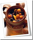 Servir en jarritos pequeños bien caliente y no os olvidéis de poner un poco de fruta en cada uno