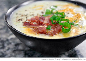 7. Garnish each serving of soup with cheese, green onions and crumbled bacon. Serve immediately.