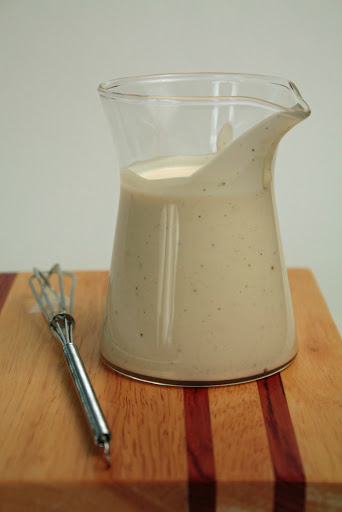 I wasn’t planning on sharing this not-quite-homemade recipe with you, but my mother insisted and even my little brother, who usually hates mayonnaise, backed her up. The thing is, I can’t stand store-bought salad dressings, and I absolutely will not buy them. (They have such a gloppy texture from all those gums!) Prepared mayonnaise, on the other hand, I’m perfectly OK with. Anyway, this is the quick recipe I make when I’m in the mood for a creamy salad dressing but don’t feel like getting out the food processor and eggs. Everyone seems to love it, and it has inspired certain other people to give up bottled salad dressings too.