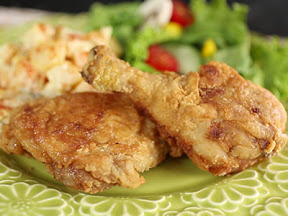 3. In the meantime, heat Crisco and coconut oil (50/50) in a cast iron. When melted, the oil should reach ½ way up the pan. Oil should be at 350 degrees. Carefully place pieces of chicken in hot oil. Fry the chicken in the oil until brown and crispy. Dark meat takes longer then white meat. It should take dark meat about 15 minutes, white meat around 10-12 minutes. Remove from pan and drain on paper towels. Place in warm oven until ready to serve.