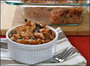 Spray an 8" X 8" baking pan with nonstick spray, and carefully fill with contents of the bowl. Evenly top with Parm-style topping and remaining 2 tbsp. mozzarella cheese.