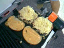 Butter 2 slices of rye bread and place butter side down on griddle.