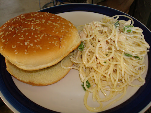 • 1/2 of a 16 oz. box of Angel Hair Pasta ( or 2 cups Elbow Noodles)